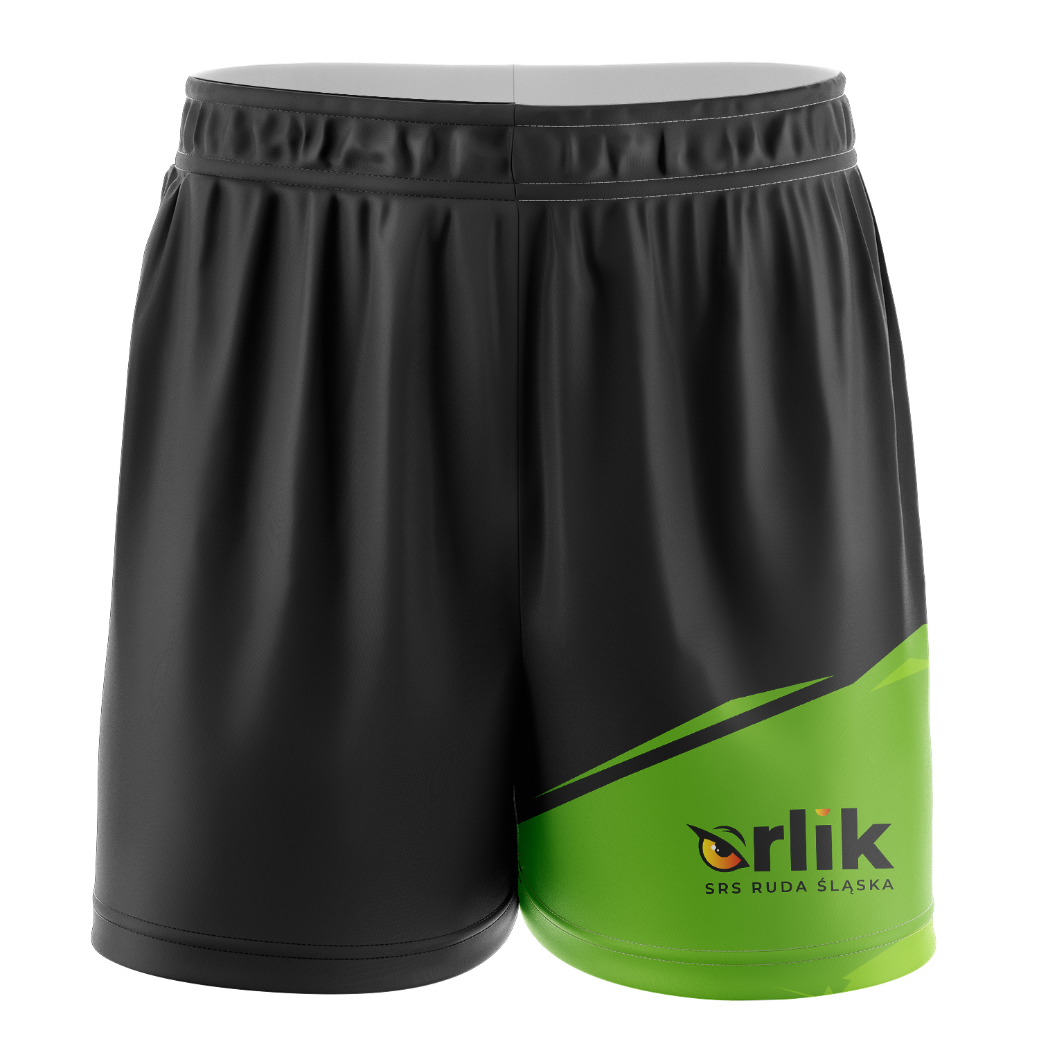 Odkryj nasze czarne spodenki meczowe z wyjątkowym akcentem klubowym. Z jedną nogawką do połowy zieloną, ozdobioną logo ORLIK, te spodenki są nie tylko funkcjonalne, ale także pełne stylu, idealnie odzwierciedlające ducha naszej drużyny.